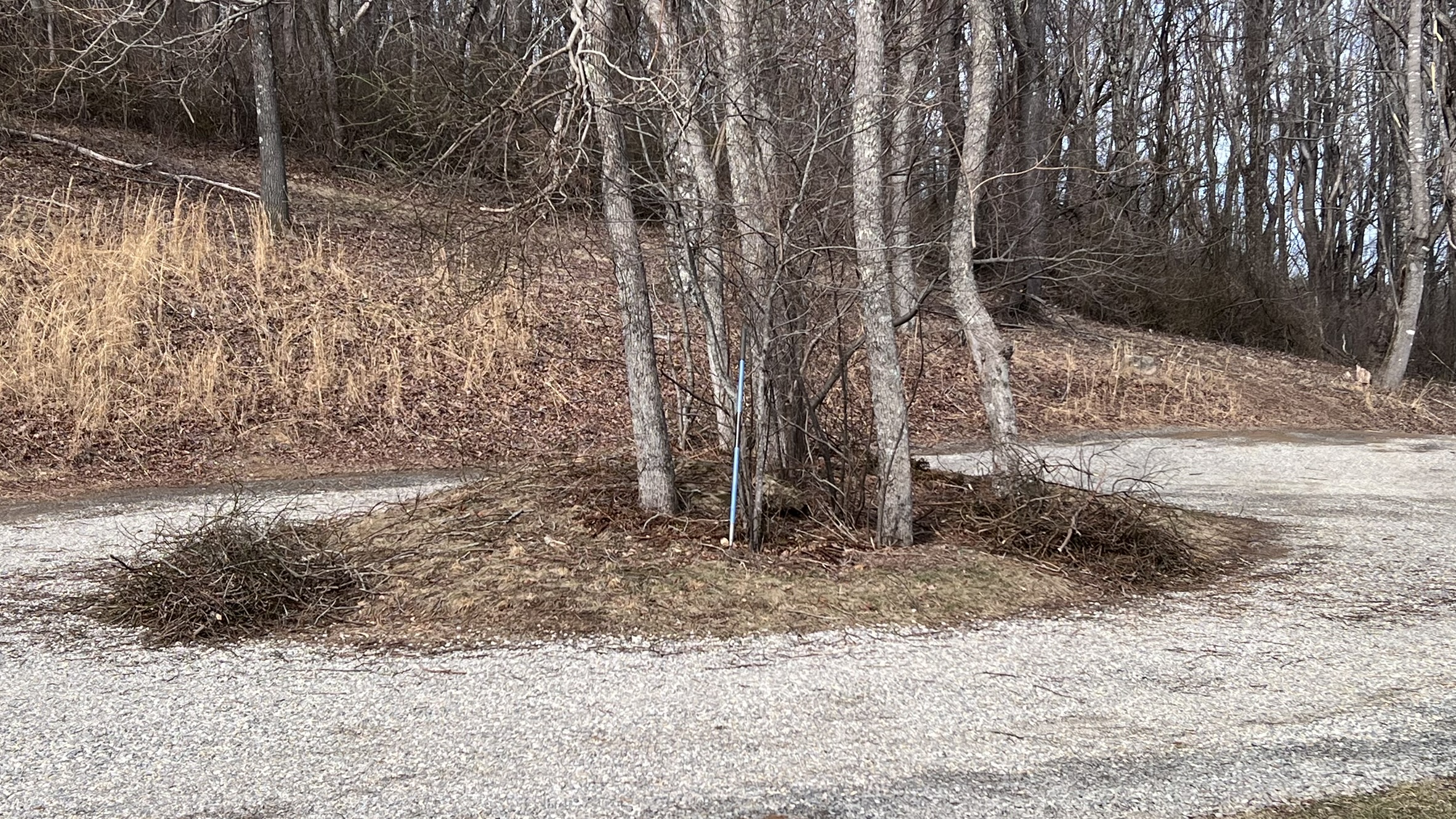 We raked the limbs and brush from the driveway into the center while it was still icy and snowy, and there it still was a week after the beginning of the ice storm.